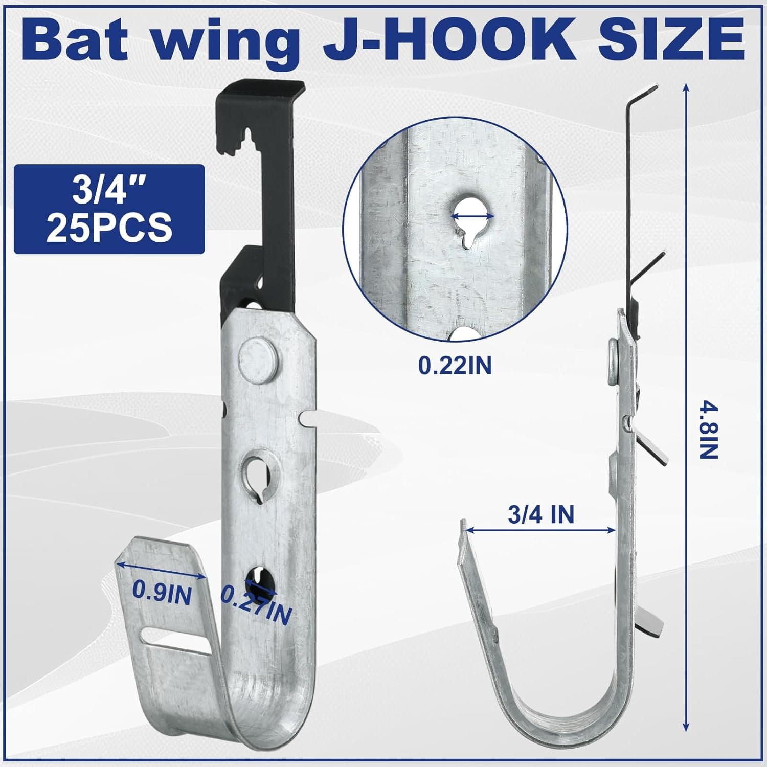J Hook Hangers Cable Support with Bat Wing Heavy Duty G60 Galvanized Steel Cable Hooks for Attaching Ceiling Wire Threaded Rod, Ul Certification (3/4 Inch)